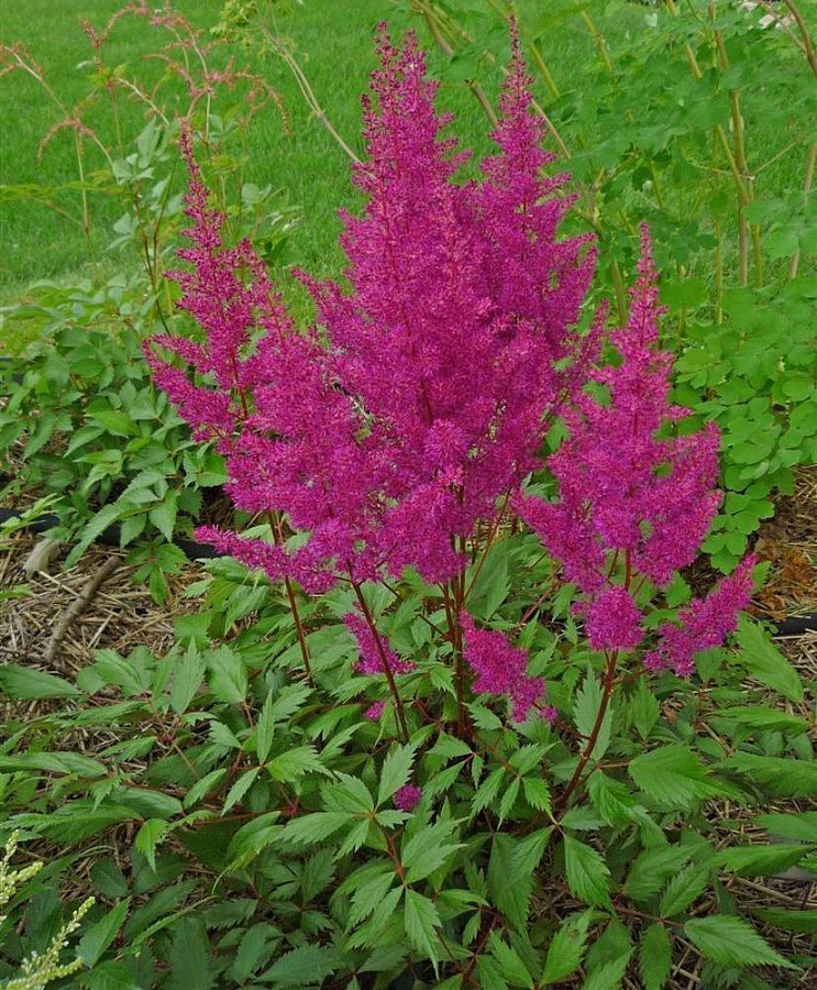 Листья астильбы имеют зеленую окраску с красноватым оттенком, что придает растению особый шарм и привлекательность. Это растение предпочитает полутень, поэтому выберите для него укромное место в саду. Астильба японская Элизабет ван Вин не требует сложного ухода: достаточно регулярного полива и умеренного удобрения для обогащенных почв.