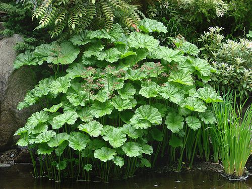 Рассада Дармеры щитовидной имеет стержневой корень и разрастается в большое количество крупных щитоподобных листов с сочными прочными черешками высотой до 90 см. Диаметр отдельных исполинских листов взрослого растения достигает 1 м. Первым в апреле прорастает цветонос (щиток с большим количеством розовых мелких семенных цветочков) на красивом пурпурном стебле длиной 50-0 см. Затем появляются эффектные сочные декоративные зеленые листы с резным краем и прожилками. Рекомендуемые зоны для высаживания: