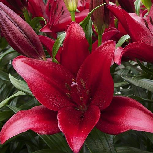 Луковицы Лилии ЛА-гибрид Атакама (Lilium Atacama) в период цветения раскроют  всю красоту удачной селекции. От Лонгфлорум-гибридов сорт унаследовал  высокий рост (до 130 см) и крупные цветки. Глубокий ровный насыщенно-красный цвет глянцевых лепестков,  будто покрытых восковым налетом, радует любителей разноцветных красок в саду. Азиатская «родословная» сделала Атакаму выносливой, устойчивой к заболеваниям и самым сильным морозам. Лилия на много лет станет украшением сада, а в срезке она по праву займет место центрального элемента композиции.