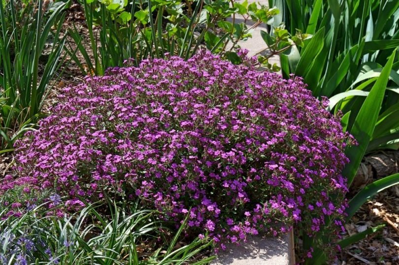 Рассада мыльнянки базиликолистной (Saponaria ocymoides) образует мягкие подушки благодаря стелющимся побегам. Вырастает в высоту око 15-20 см. В мае обильно покрывается небольшими светло-розовыми цветочками. Цветочки пятилепистковые и собраны в рыхлые цветения. Плюсы мыльнянки базиликолистной: