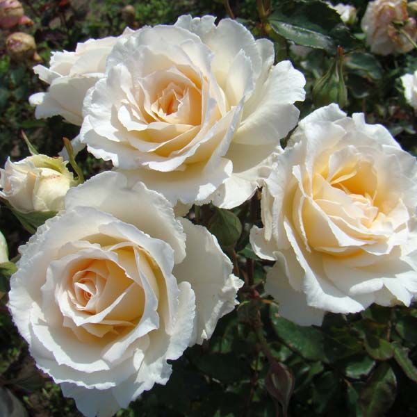 Роза чайно-гибридная Шопен - это великолепное растение с кремово-белыми цветками, которые напоминают ноты музыкальной композиции. Ее ствол прочный, а высота достигает до 150 см, создавая великолепный акцент в вашем саду. Листья розы имеют зеленую окраску и форму, которая придает растению изысканный вид.