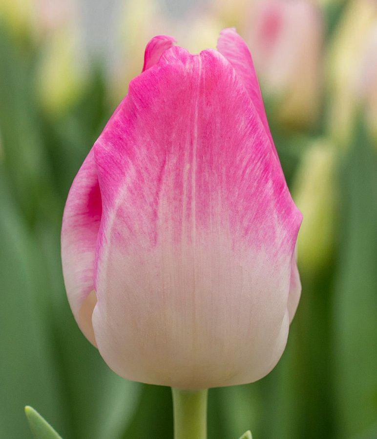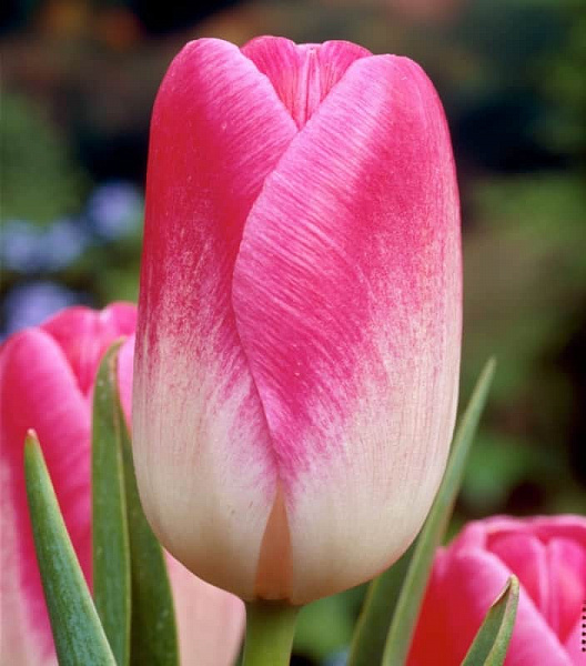 Тюльпан Розарио - это великолепное растение с насыщенно-розовыми цветками и белым основанием, которое поражает своей красотой и изяществом. Этот многолетний цветок достигает высоты до 45 см и идеально подходит для групповых и одиночных посадок. Листья травянистые, а ствол прочный и устойчивый.